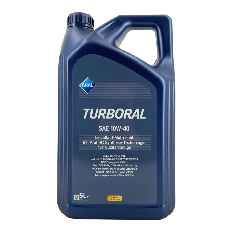 Aral Turboral 10W-40 είναι ένα οικονομικό σε κατανάλωση καυσίμου λιπαντικό για βαρέως τύπου diesel κινητήρες, σχεδιασμένο για χρήση σε μικτούς στόλους. Είναι κατάλληλο για φορτηγά, λεωφορεία, ελαφρά επαγγελματικά οχήματα (LCV), καθώς και για μηχανήματα εκτός δρόμου. Έχει αναπτυχθεί για κινητήρες υψηλών επιδόσεων που λειτουργούν σε απαιτητικές συνθήκες, ενώ μπορεί να χρησιμοποιηθεί και σε ελαφρού τύπου diesel και ορισμένους βενζινοκινητήρες.